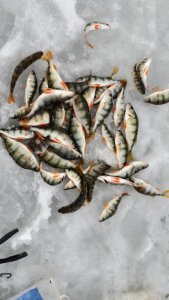 Поклёвки симпатичные радовали глаз когда была лютая проводка с нервной) тряской. Пальма первенства однозначно завоевал чёртик 0,5 грамма, иногда уралочка с мормышем. А вот мотыль, - тунеядец,) лишь одна рыбка покушала его. Все действия осуществлялись на леске 0,08 - 0,1.