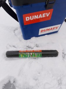 👋Пробурено с десяток  лунок на глубинах  от 4–5м. Лунки прикормил готовой прикормкой Dunaev Плотва на фото Использовал плавную игру с подъёмом на 10–30 см от дна, паузами 2–3 сек.В лунках с отсутствием поклёвок делались перерывы на 5–10 мин. с насадкой паста для меня это что то новенькое да не было времени сделать болтушку. И есть информация что на этом озере карась не зарывается в ил )))))) пусть 🤏 но надежда поймать карася зимой да еще и на Глухом озере. Сразу скажу Форелевая паста не только для форели она содержит большое кол-во рыбной муки что карповым это лакомство.