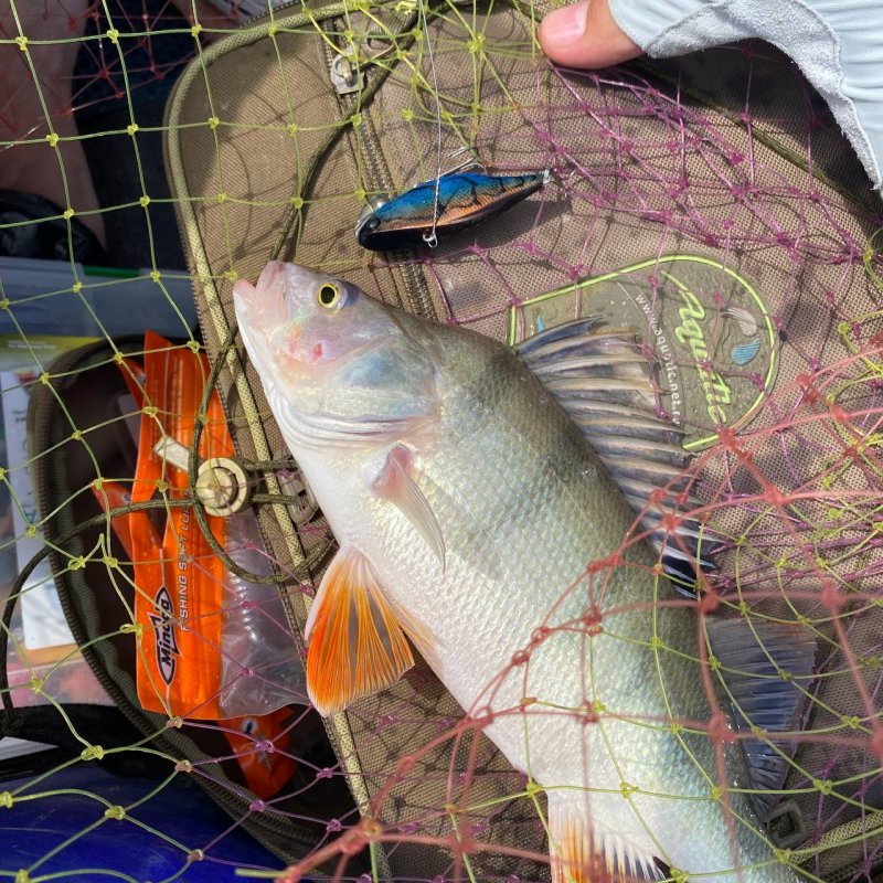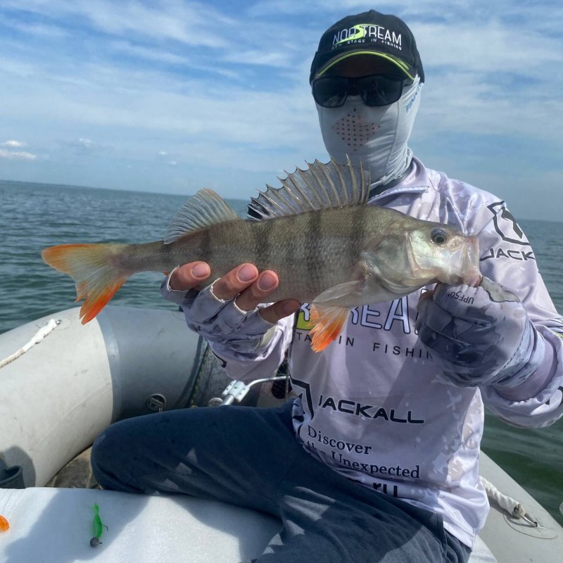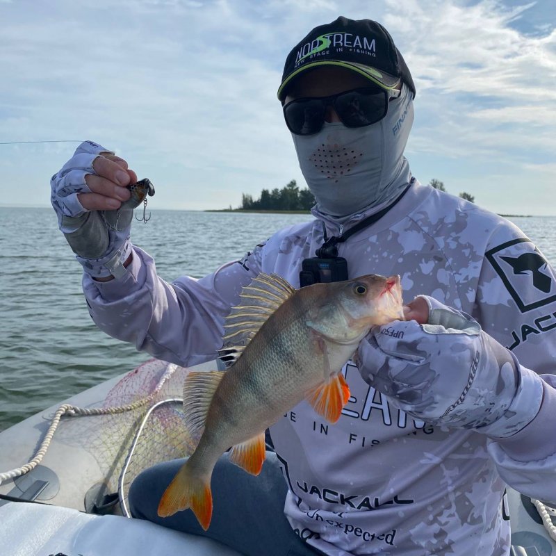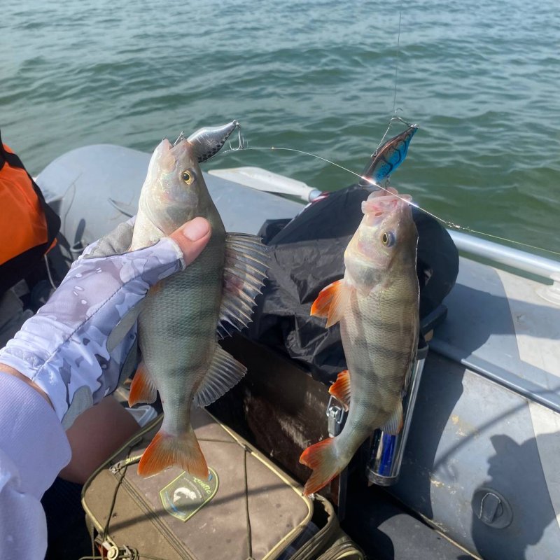 Очередная точка. Получаю пару контактов на резину, но без продолжения. Но не джигом единым: достаю раттлин, заброс, и вот увесистый окунь уже в лодке. С этого момента начинается «сенокос». Окуни один за одним жадно атакуют приманку. Кто же наш герой? — Jackall TN60/Trigon!