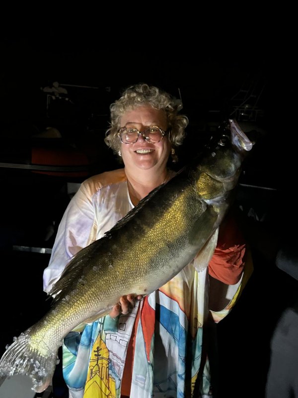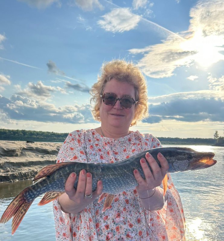 Свою первую щуку под два кг, не смотря на свои 25+, поймала Наталья (Министр Счастья), которая сначала подмотала щуку почти к тюльпану – а что дальше-то делать ?! Скинули тормозом часть шнура и в сак ее! Сколько ни учил как правильно держать, не поддалась: «Буду держать так чтоб не убежала!!!!».