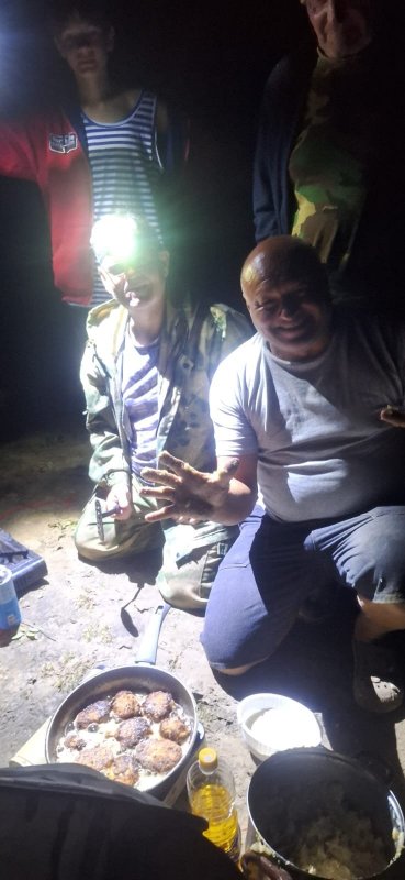 Женя (Добряк) с сыном Романом (Сын) сначала одели какие-то мандулы длиной сантиметров по 25 – такая длиннющая разноцветная кишка – гирлянда, просто ужас! Заставил снять и не пугать рыбу, сняли…наловили нормально. Но именно у них и были те самые долгожданные и "удачно" про…а….е поклевки: сначала судачище: туда-сюда верх-вниз и … кердык шнуру, потом крокодил щучий за 10 кг после прослабления вышел в свечу, традиционно помотал башкой – головка пулей улетела из пасти … Хотел бы я посмотреть на лица наших рыбаков в этот момент! Бывает …