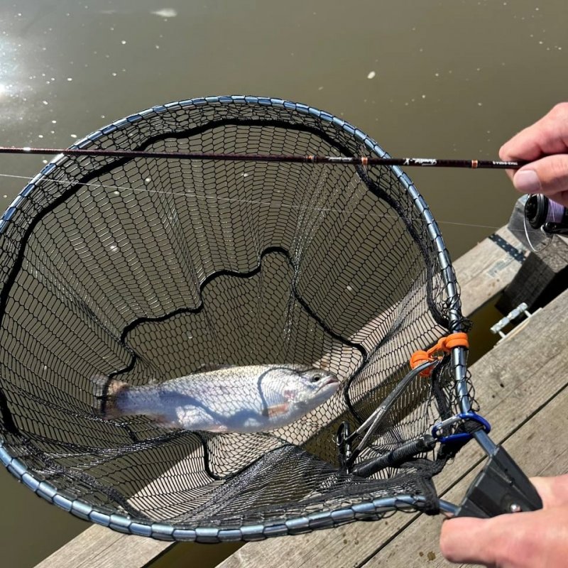 Тащить с собой гору приманок не было никакого желания. Поэтому, чтоб уж наверняка не остаться голодными, взял с собой несколько баночек рабочей форелевой резины и джиг-головки Norstream Trout Jig Head. А раз резина, то тут однозначно Norstream Troutist-X 642ULS. Удилище универсальной длины, 1,93 м, которым можно действовать как на небольшом озерце, так и «по площадям». Хоть тест у «Траутиста» и 0,4–4, запаса мощности на вываживании ему хватает, как, впрочем, и всем моделям серии.