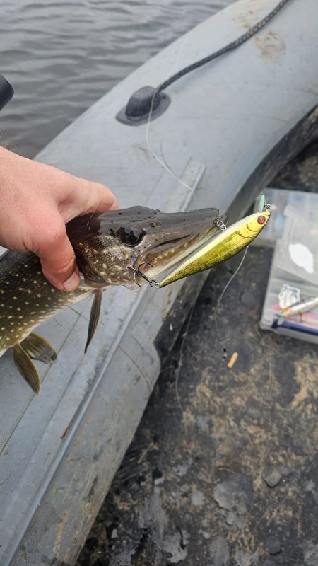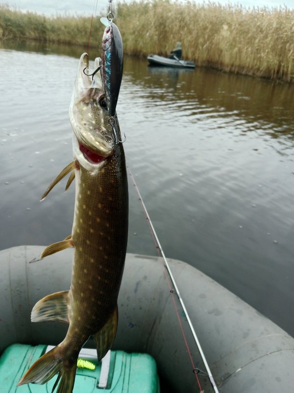 А вот тут началось самое интересное. У Дениса щука клюет, у меня - нет. Воблеры мы метали в одни и те же точки, на предыдущей рыбалке в этих же местах я его жестоко обловил, но Фортуна, видимо, неравнодушна к страдающим похмельным синдромом.