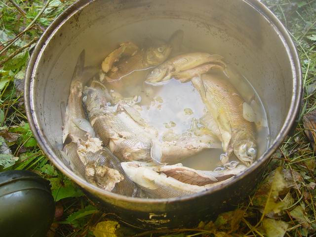 И, как и вчера, все у нас получилось: свежежареная рыбка под холодное пиво, ароматный суп из нежнейших рябчиков, тепло от печки, сухость в шмотках, горячий чай и вечерние новости по радио.