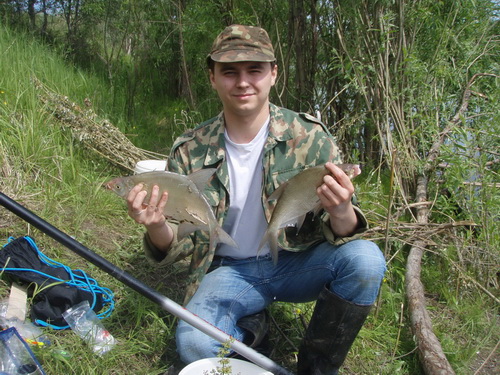 Мы с приятелем, договорязь заранее, встретились на автовокзале уже экиперованные и готовый к подвигам, купили билеты на автобус до Мельникова и отправились в путь. Дорога заняла полтора часа, но проскочили они как пять минут. В Мельниково нас уже ждала машина, которая благополучно и доставила рыбаков до места назначения. Место это я выбрал не случайно, по карте отследил наиболее благоприятное для рыбалки на белую, место из чисто теоретических сооброжений. В этом месте обь разделял остров километра 3 в длинну. Развернув лагерь, поспешили обследовать обстановку, прошли км туда, км сюда! Мне приглянулось одно местечко перед высокими обрывами...с одной стороны отмили, а с другой свал с глубинами до 3,5 метров. Решено было закормить именно это место. Смесь прикорма состояла из специальной лещевой, жмыха, гранулированных аттрактантов, сваренной еще дома пшонки и кукурузы и балласта. В воду сразу были запущенны 10 шаров с аппельсин в одну точку и еще 4 вверх по течению в цепочку. 10 минут на подготовку удилища и благоустройства места. Первый заброс...ммм....поплавок не подходит, засасывает в воронки, приходиться поддтаскивать. Меняем. Вот - то что надо. Насаживаю три опарыша...тьфу-тьфу-тьфу...ловись большая...! Первая проводка по подкормочной дорожке увенчалась плотвицей с ладошку...не отчаиваюсь...дальше....снова она проклятая....не за вами я приехал, такие и в Томи возле дома исправно ловяться! В общем каждая проводка заканчивалась уверенной хваткой или плотвы или чебочка. Начал уже унывать, но что то в нутри меня подсказывало, что щас будет праздник..и вот подсечка, леска 0.12....выдержала бы, не фарсирую, вывожу аккуртно...ну вот подышал лещ (на вид килограмма полтора), теперь дело не хитрое и только я хотел его без подсачека в руку взять, как он показал свой хвост и был таков. Посидел покурил, осмыслил что произошло и дальше....а дальше-больше. Проводка - подсечка - садок , и так в течении часа. Одни подлещики. Если говорить в штуках (хотя специально не считал) то около 20 штук. Далее тишина, снова мелочь, пузатая от сьеденной холявной прикормки. Жара стояла не шуточная, и для сохранения уже пойманног было решено сматываться и ехать домой. Приятель к стати не поймал ни одного более или менее достойного экземпляра, чему ужасно был огарчен...но ничего какие наши годы...!