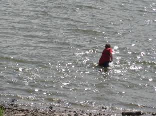 существуют т.н. забродные костюмы: герметичные штаны с сапогами из прорезиненой ткани, из неопрена; есть вейдерсы... на крайняк можно было взять войсковой полукомбез от комплекта ОЗК... в них и сухо и тепло!