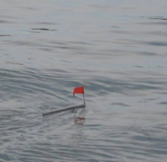 На кораблик был установленвымпел для лучшего контроля поведения кораблика на дистанциях больше 50 м.