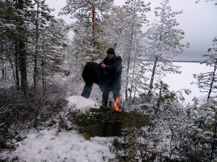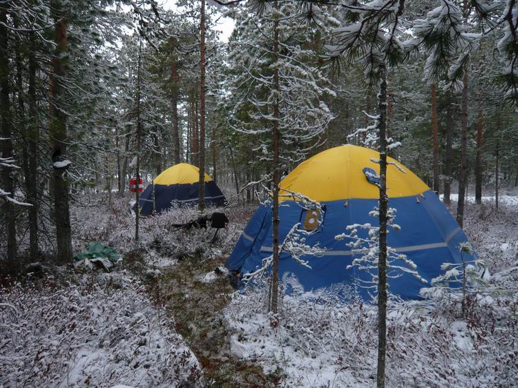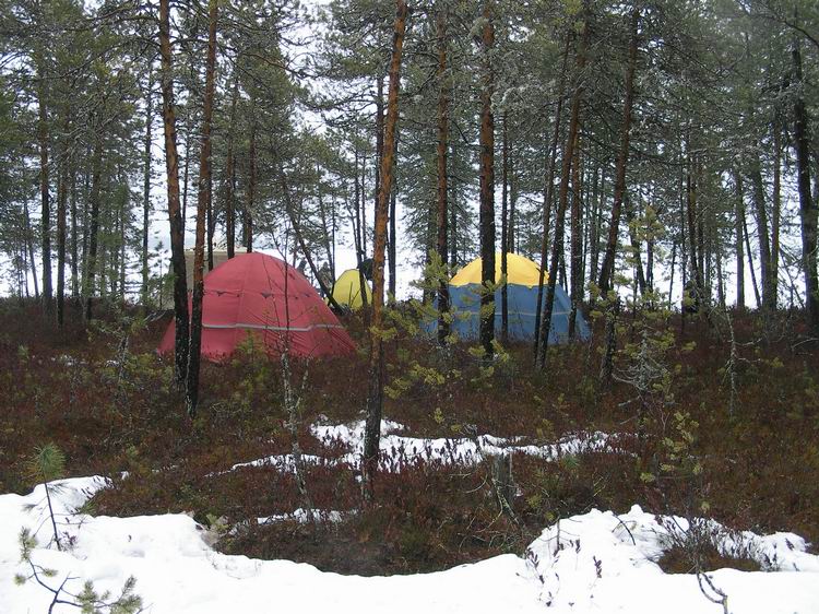 3 дня из 4-х шел почти беспрерывный дождь, который с утра сменялся на мокрый снег. И лишь один день порадовал солнцем и теплом. Беспрерывный клев и мерзкая сырая погода располагали к уютному укрытию- к шатру, поближе к кухне.
