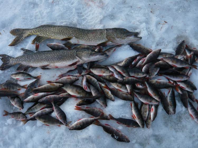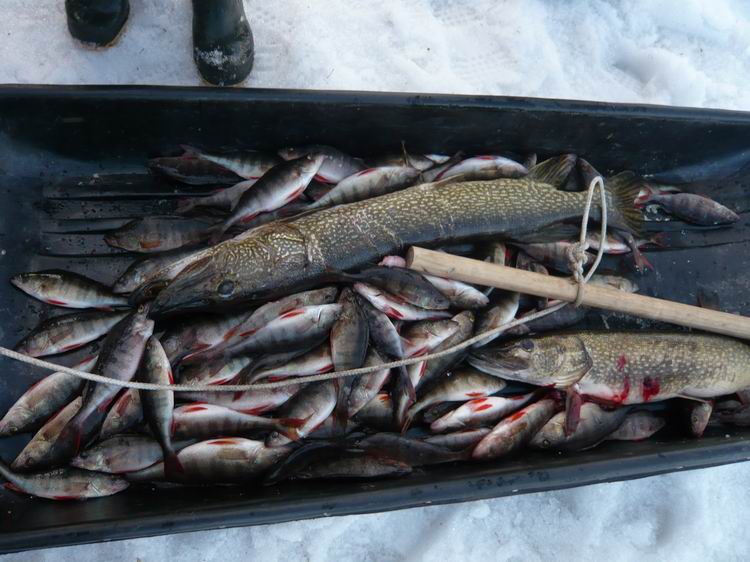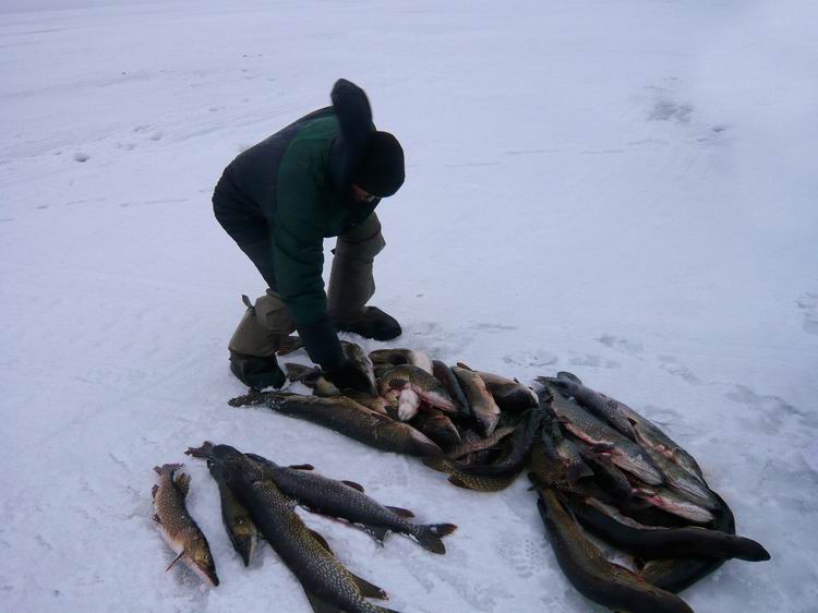 Зато очень порадовали жерлицы. Работали практически без перерыва. Глубина лова – 1,5-2 метра. Но лучше всего ловилось на мели – 1-1,3 метра. Хорошо хоть в живцах недостатка не было. Щука мерная 2-5кг. Очень активная по клеву. Но при этом на балансиры было выловлено всего 5 штук до килограмма. Всего поймано около 70 штук щук.