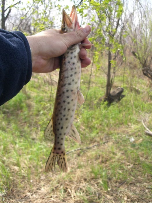 На самодельную колебалку поймал несколько таких щучек.