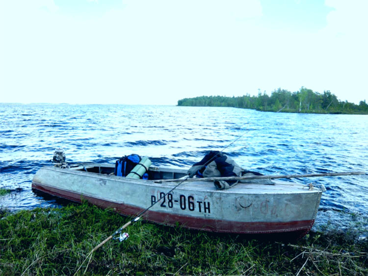 Ну что же, решил передвигаться сплавом по ветру. Ну и ночевать в таком случае придется в лодке. Вернуться обратно против ветра в избу с помощью маленького весла было просто не реально. Благо, ветер часто менялся (раз в 2-3 дня). Энтузиазм Робинзона в лодке закончился в первую же ночь. Все было хорошо. На воде продувает- нет ни комаров ни мошки, но в лодке живут какие то мелкие, гадкие, склизкие червяки, типа слизней. Ничего от них не спасало. Забирались за шиворот в считанные минуты, стоило только лечь спать. Вот откуда эта гадость берется на свете???