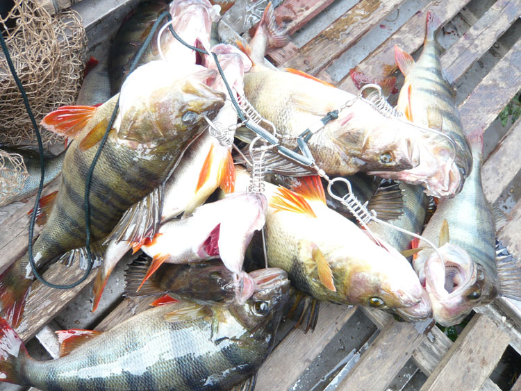 Выловленная рыба в конце дня солилась, через три дня промывалась и вешалась на сушку. Сколько реально можно поймать в день окуня и щуки? Килограмм 15-20. Вяленной рыбы получается вдвое меньше (чистого филе без головы и хвоста). В принципе за месяц можно насушить 150-200кг, и сдать за 40000 (200руб за кг)