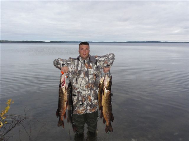 В тот день рыбалка была очень трудовой, из за смены погоды и сильного ветра мы смогли на двоих взять 5-ть щук.