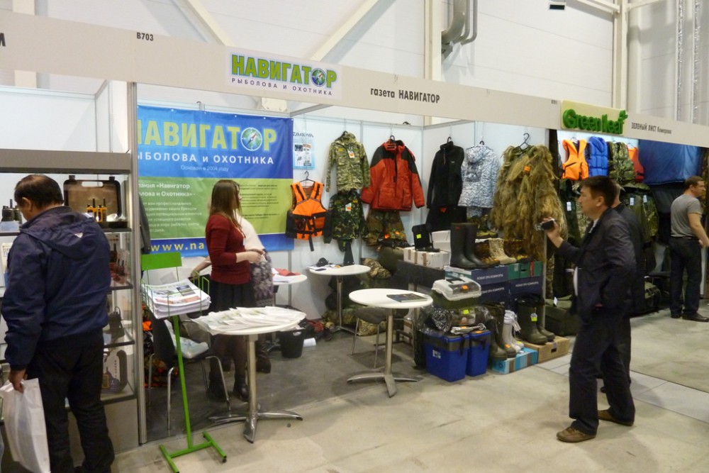 Идем дальше. Вот стенд газеты "Навигатор", на котором тоже представлен некоторый рыбацкий инвентарь.