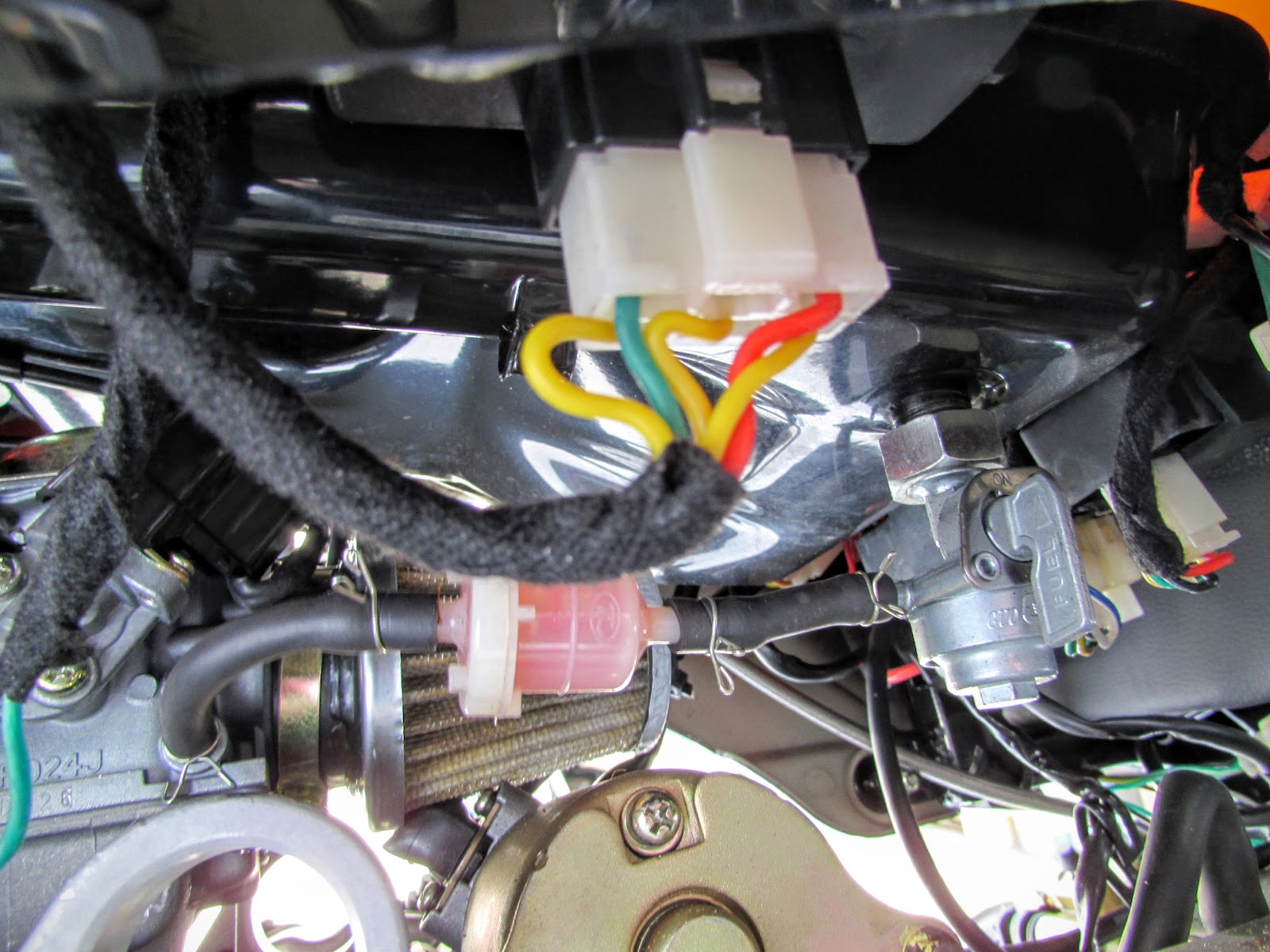 Поставил аккумулятор на зарядку и полез штудировать интернет ресурсы на предмет подобного "тrouble". Ничего подходящего в сети на нашел, стал разбираться сам. Разобрав выключатель света, там проблем не обнаружил. Но выявил одну закономерность, индикатор "отсутствие заряда" загорался лишь когда включал дополнительные потребители энергии, будь то обогрев рукояток или освещение, т.е. под нагрузкой. Стал проверять дальше и обнаружил отсутствие контакта на клеммах регулятора-выпрямителя напряжения. При шевелении оных работоспособность цепи восстанавливалась, но через некоторое время напряжение пропадало снова, до нового шевеления. Стало понятно, что причина в плохом контакте клемм. Работа электросхемы построена таким образом, что при неработающем моторе дополнительные источники не работают, а плохой контакт на регуляторе воспринимается как выключенный мотор. Один из проводов в колодке оказался обломан, а именно зеленый. Поставил новую клемму, проблема исчезла. Надеюсь надолго.