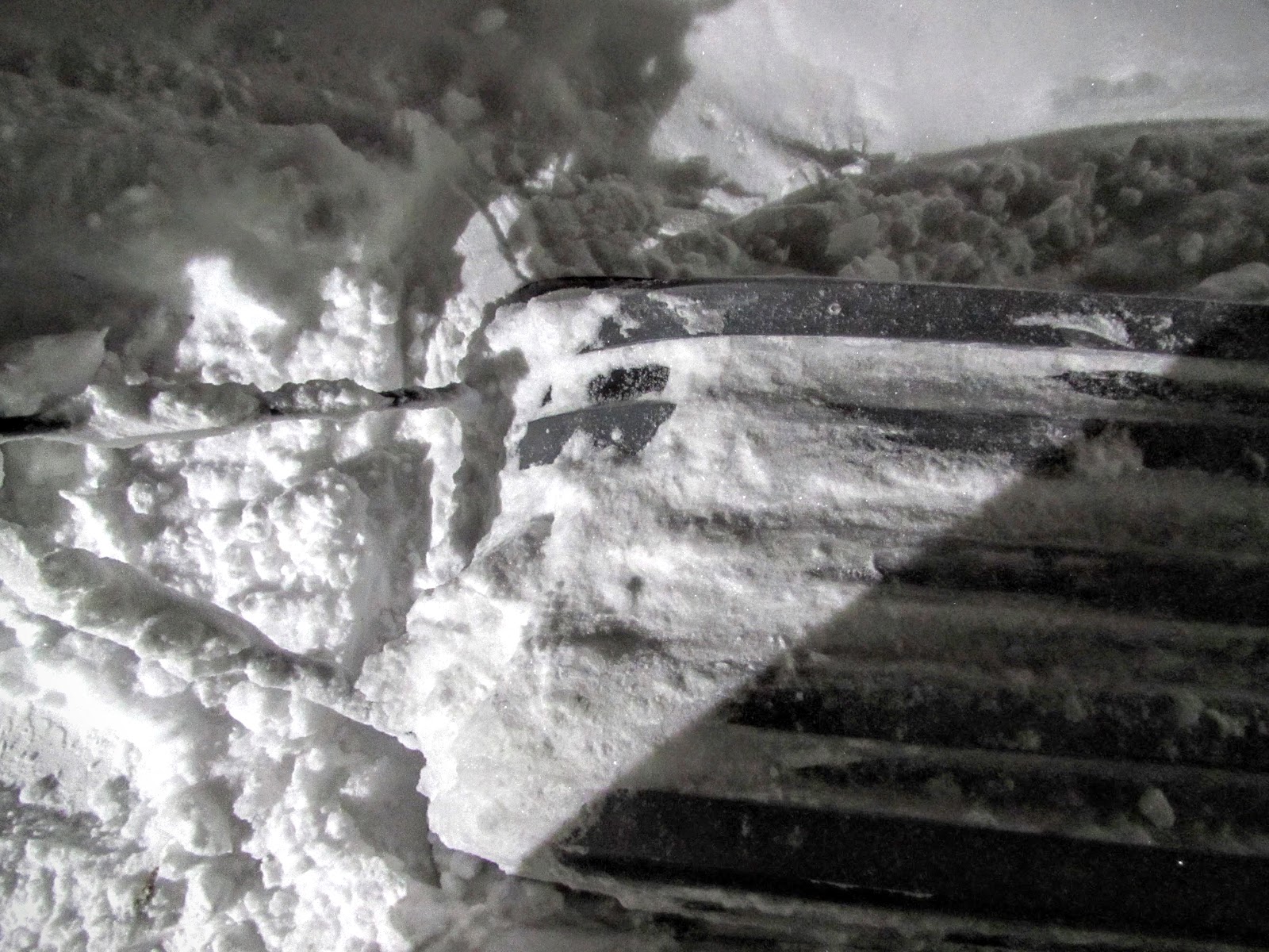 Конек- Горбунок в лыжню не попадает, норовя выскочить на целину. Поэтому стараюсь прокладывать свой путик чуть в стороне, желательно по кустикам, так "дылды" туда меньше суются))). По буранице снежник бежит ловко, краями лыж задевая нетронутый снег. После мотособак остается сильно глубокий след и Динго идет с большим креном, что вызывает дискомфорт. Наледь с толстым слоем снега Динго проскакивает поверху, оставляя за собой ровненький мокрый след, не проваливаясь до воды, в отличии от старших братьев, которые просто перепахивают весь наслуд.