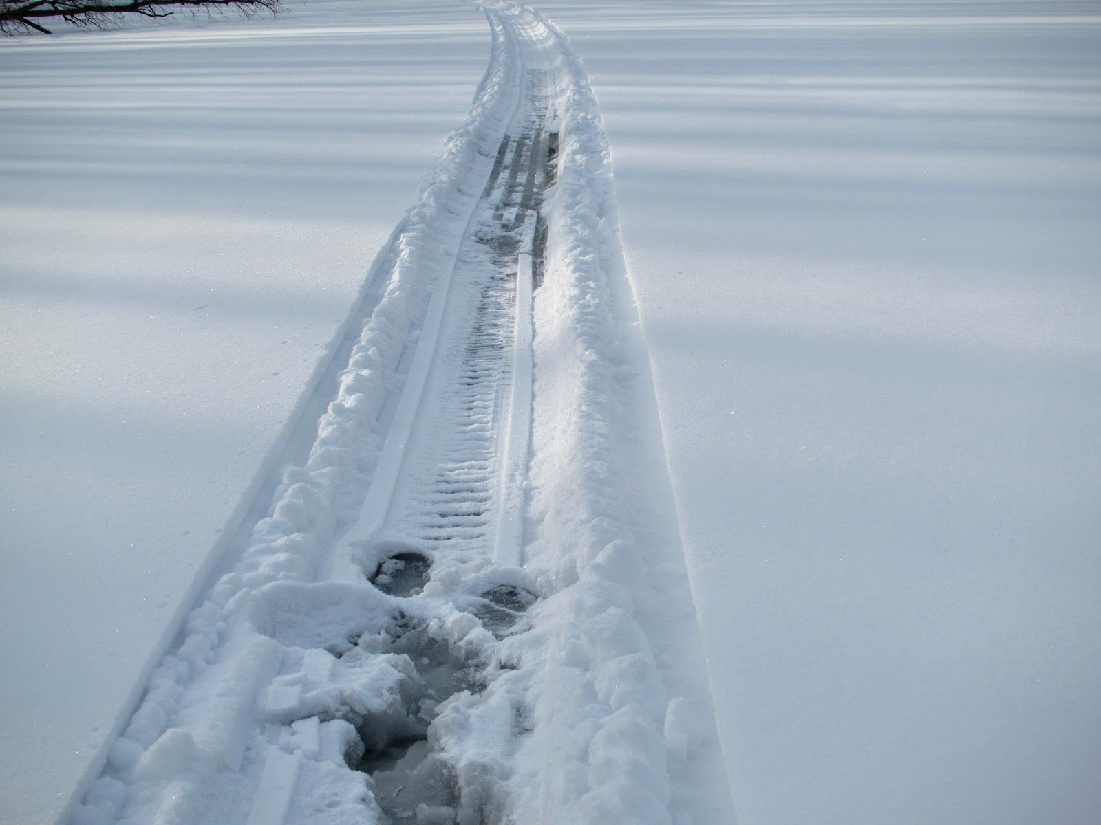 Лучше всего снегоход едет по своему следу, как по рельсам. Именно по накатанному своему путику передвижение наиболее комфортно и двигаешься с номинальной скоростью.