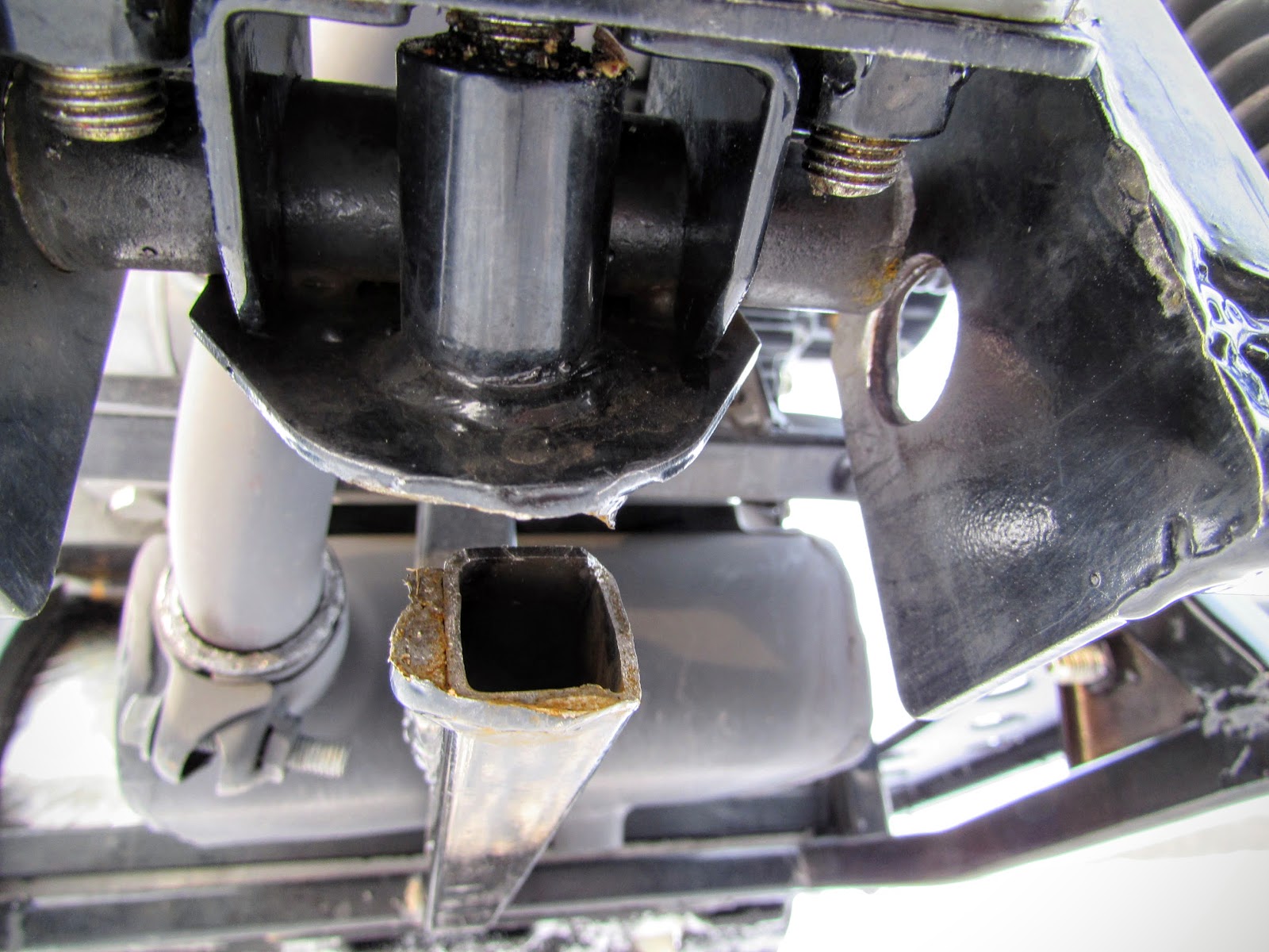 Приехал на место рыбалки, открываю сиденье, оно задевает за бензобак, в размышлениях, что случилось, наталкиваюсь на мысль, посмотреть раму...