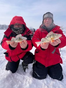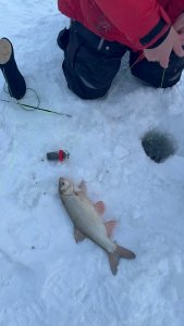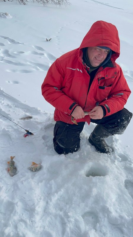 В воскресенье мороз -32 но это не остановило нас) Далеко не поехали, ибо очень холодно. Окуня нашли, работал балансир от Rapala. На комбайны лещ и язь...