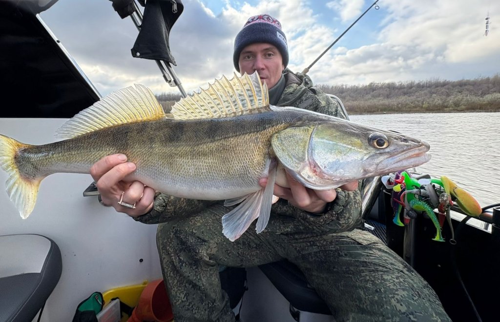 Особо трофейных экземпляров не было. Ловили судаков на глубине 6-6,5 метра. Проводка классическая ступенька.