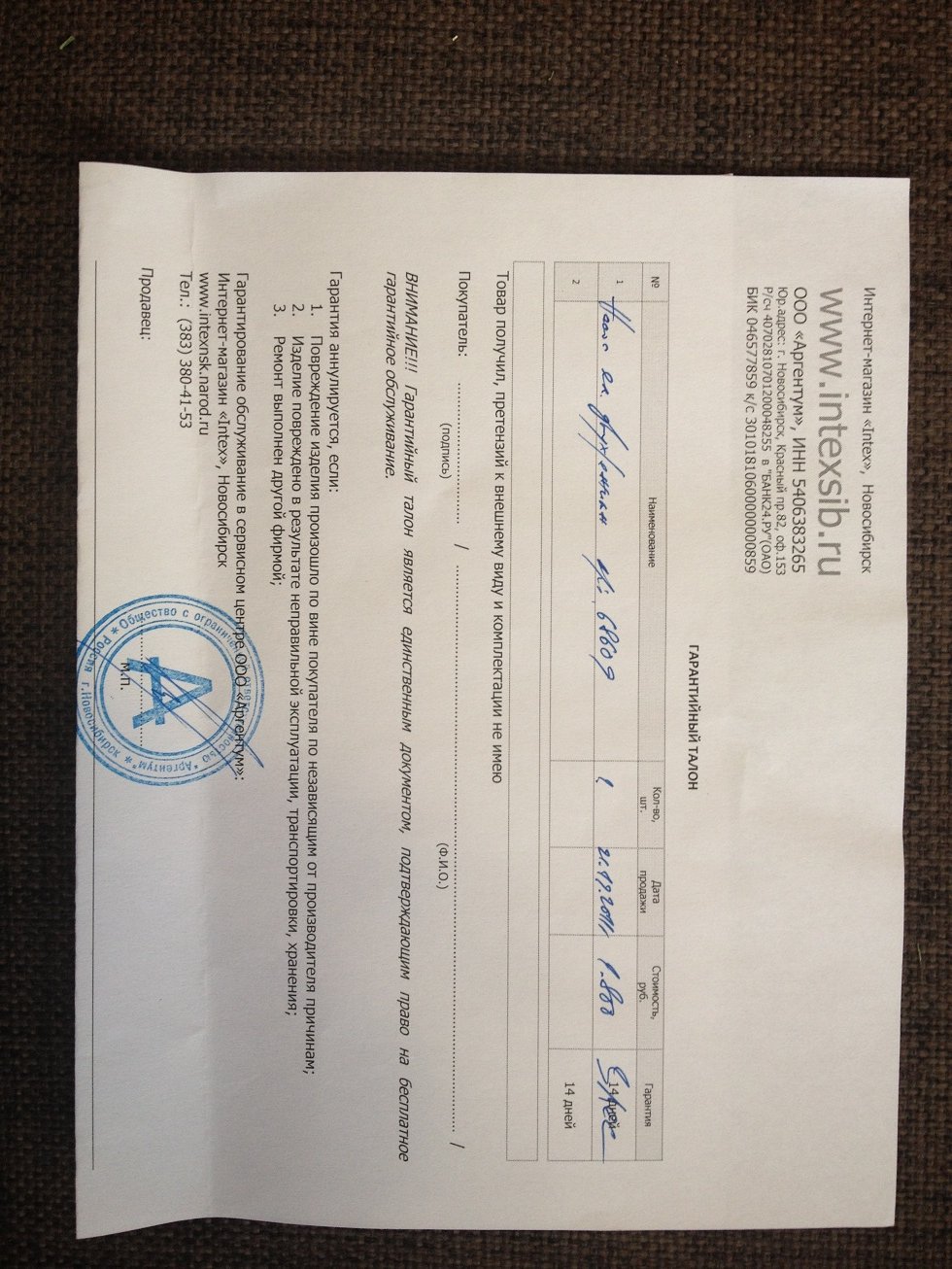 Вот нашёл гарантийник.Там все реквизиты.Телефон в низу.