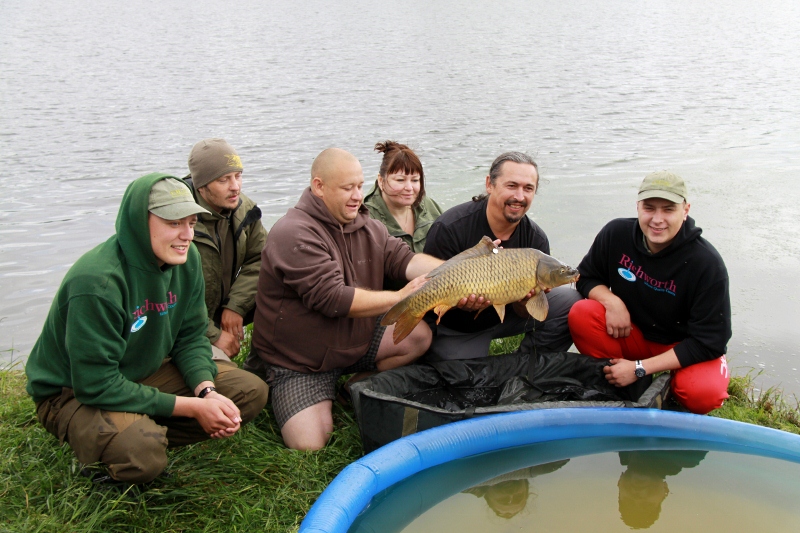 В 10-00 всех пригласили на построение. После официального открытия соревнований, был произведен торжественный запуск карпов с бирками, спонсорами соревнований были выпущены два карпа весом около 12 и 20 кг. с названиями «Уголек» и «Масяня». Третьего карпа с биркой «Алтай», выпускали спортсмены Алтайской сборной. Но на этом выпуск рыб не закончился, Гриша с Алексеем подготовили нам сюрприз – подготовили карпа с биркой «сборная Новосибирской области», за что им большое спасибо.