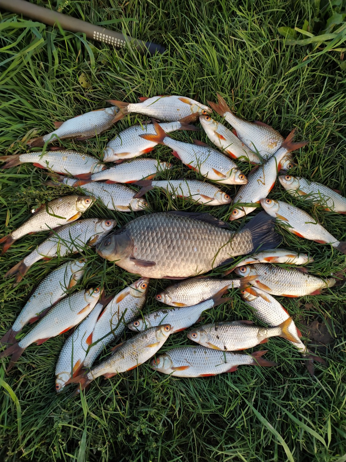 Сегодня мозаика без карася. Продежурил на ложке пару часов без поклёвки, переехал на спортберег и там опять навалял плотвы из под кувшинки. Карася и сазанов не видел ?