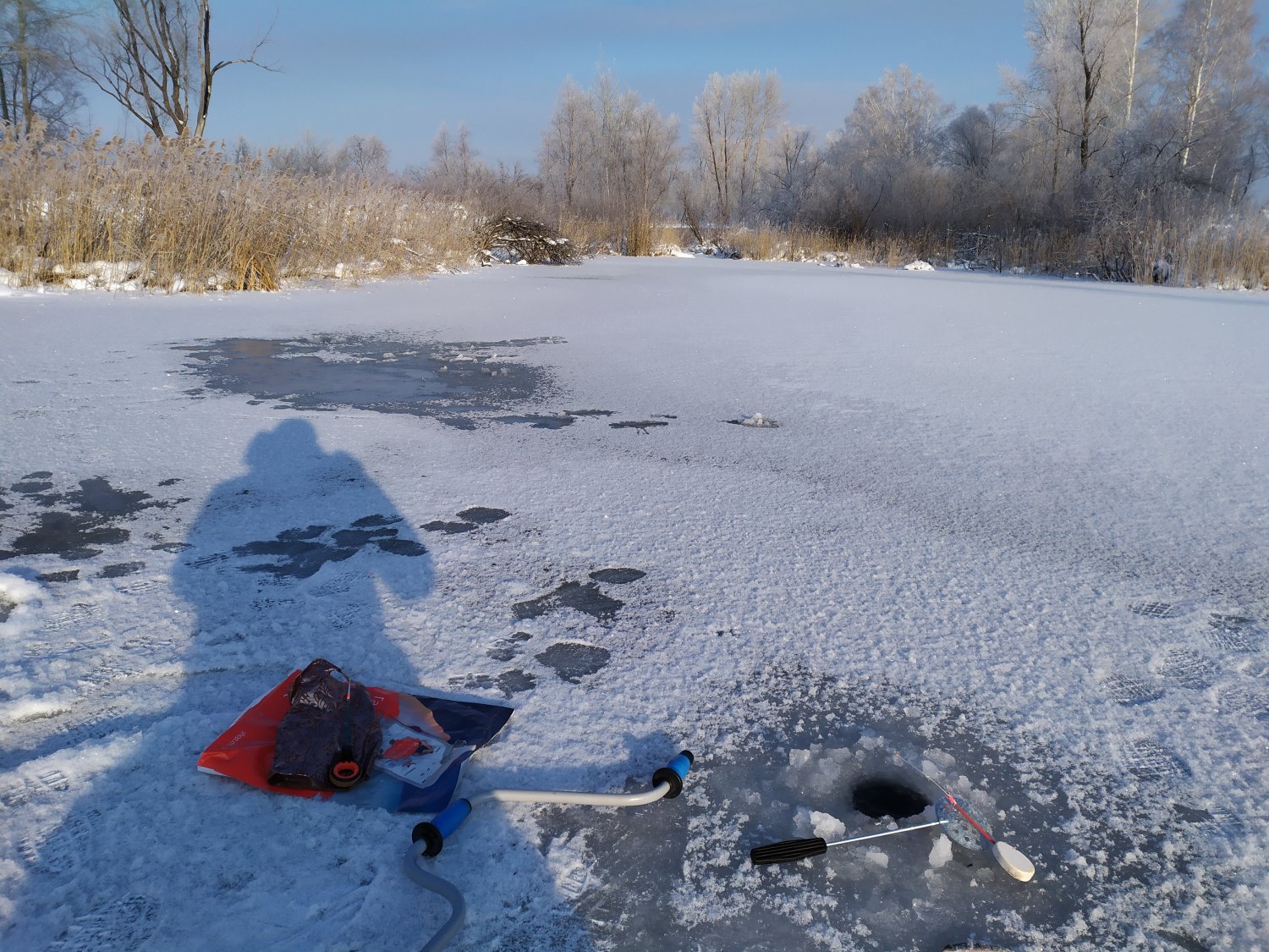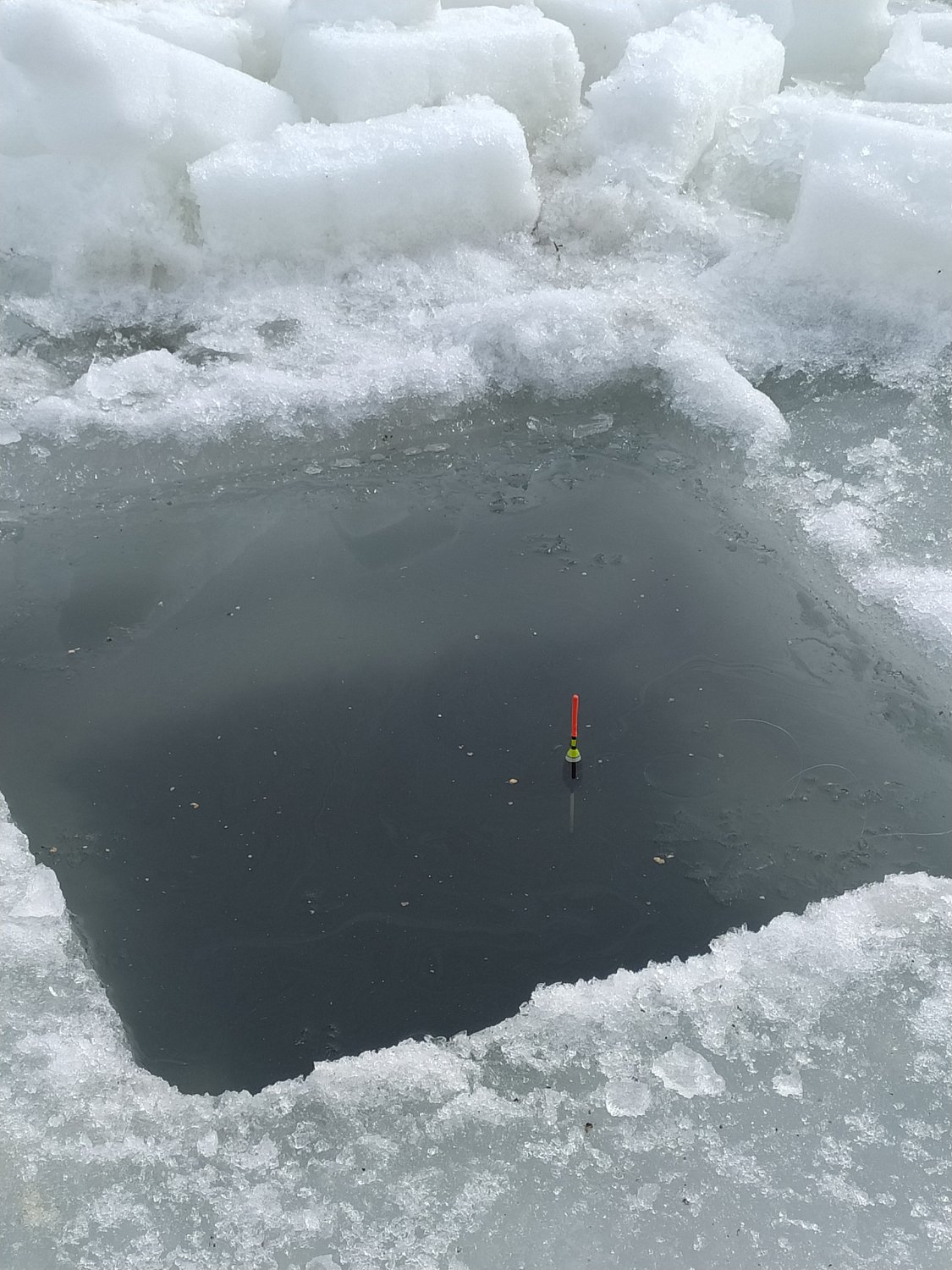 Рыбачить в лунке на зимний кивок ходят все, а вот в майне и с поплавком.... В общем всё ожидаемо с такой снастью, леской и крючком, у меня ни одной поклёвки. Но это была и не цель (хотя надежда теплилась))).