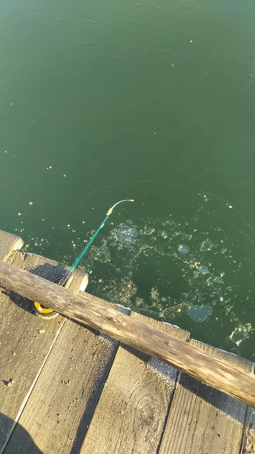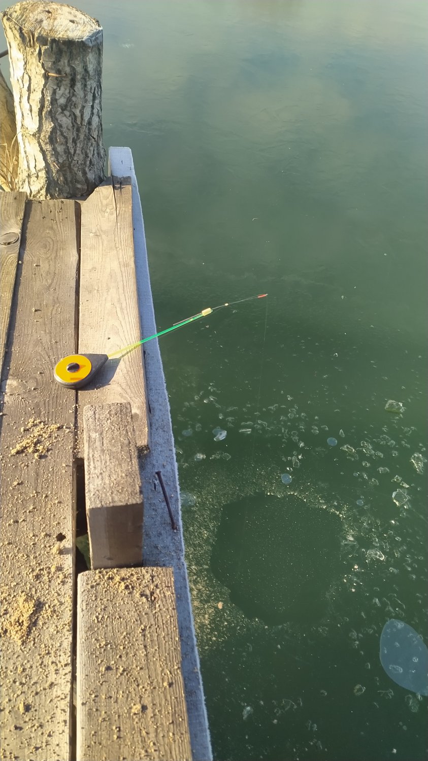 Ближе к середине где ещё остались участки жидкой воды, вовсю ещё орудуют спинингисты микроджигеры.