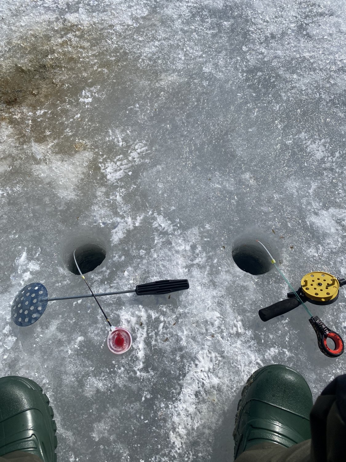 Выслушав некоторую информацию, понимаем, что да, люди ловят. И ловят двое в двух палатках. Остальные безуспешно бурят вокруг.
