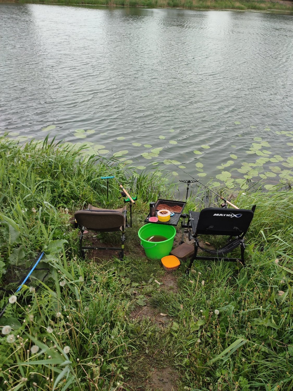 Приехали вечером в пятницу 09.06, расположились, закормили, закинули «палки» - 0. Ни одной поклевки за вечер. Закормил еще раз на ночь точки, практически с руки) и пошли спать!