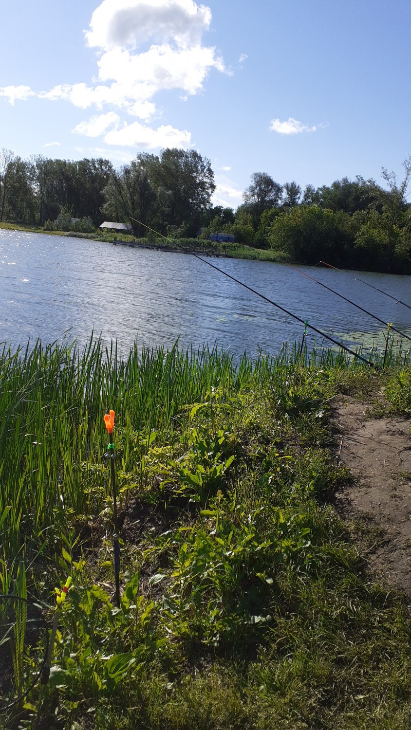 Добрый день, приехал вчера в 18 часов на озеро, с ночевой , на берегу с тополями отдыхающие, жара, Место хорошее есть в конце озера, можно и палатку поставить, только пришлось попотеть часок, покосил два прогала себе и внуку от кувшинок, Как всегда две удочки на Лобика, две на карася, Лобик взял около 22, планктон был клубника, креветка, вес 5 кг, Дома завешан был, Только немного стемнело, на месте поплавка бурун и какая-то серебряная ракета с бешеной скоростью собирает все снасти и не останавливаясь уходит в кувшинки и все, На утро собирал монтаж из чего было, Внук говорит , вроде щукарь , не знаю. Ночью гремело, сверкало вдалеке, клева не было, На карася поставил опарыша и траппер чеснок, С 6утра до 8 поймали 5 штук