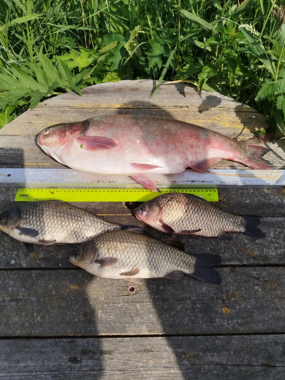 Добрый день, рыбачил сегодня, 8 августа, на лодке, торопился до дождя, которого не было, приехал рано, посидел пару часов до рассвета, а в 6 и карасик начал поклевывать, До 11 часов поймал 14 штук и 4 плотвы , опарыш красный, белый и трапер чеснок, прикорм Дунаев чеснок и перловка, Карась весь мерный, грамм по 400. Конечно и Толстолоба ловил, долго ждал, потом, в 8 утра два подряд, 2 и3 кг, Планктон персик и камыш, Комара почти нет, мошки намного меньше,Огромное удовольствие от рыбалки получил,