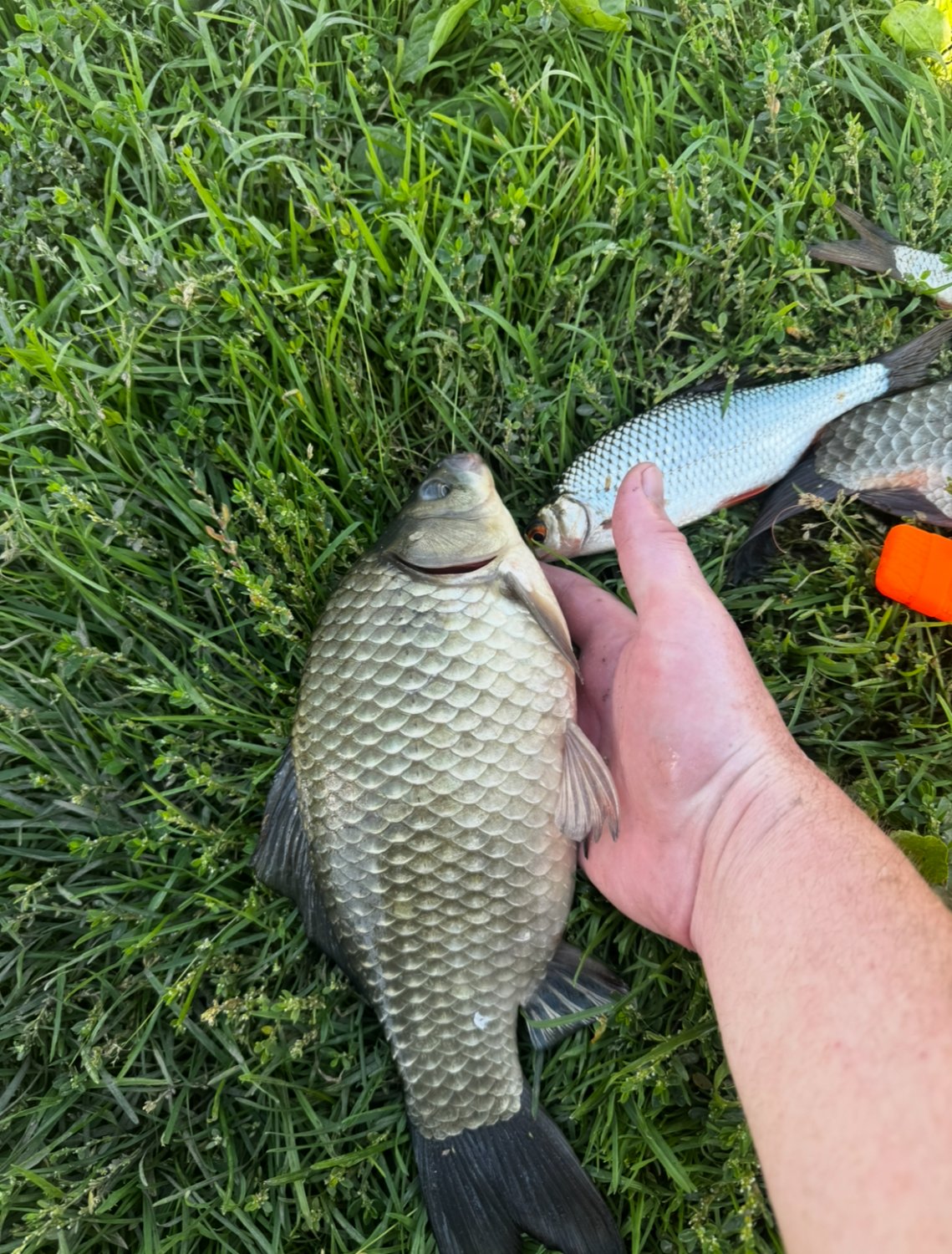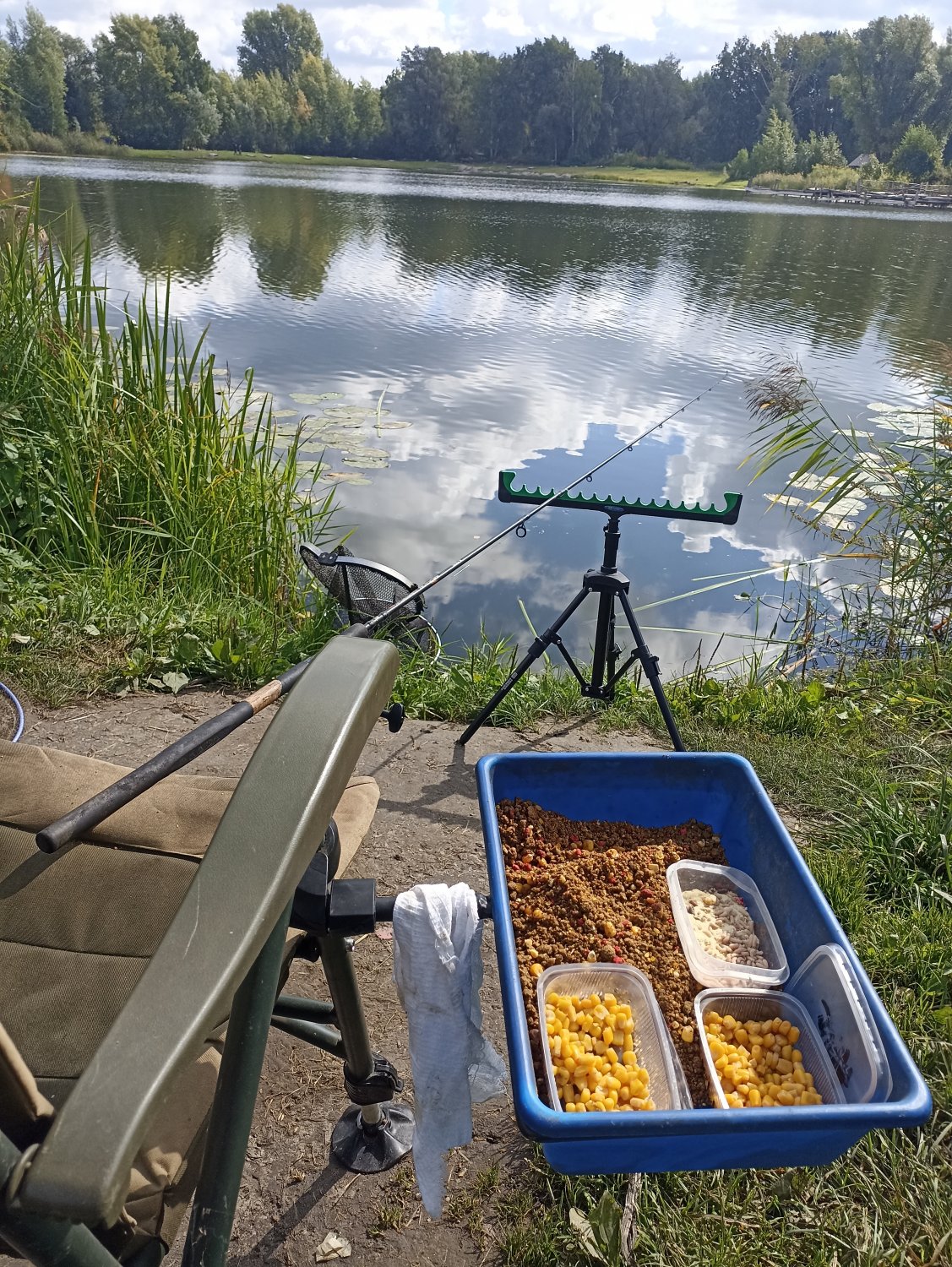На ложке карася побольше ходит чем в конце озера, это факт. Так по итогу то карася отпустил или он жалостливыми глазами уже со сковородки смотрел на тебя?Здравствуйте всем, приехал в начале седьмого утра, хотел встать на диком берегу, там хоть не так солнце жарит, но у вы все занято, приехал на ложку места были, замешал две пачки Дунаева плюс 1 кг, пьяной кукурузы, добавил пшена и перловки все взбодрил соусом от Миненко ,монстер-краб, стал кормить, в 8 закинул методную палку, в метод забивал Миненко мидия ( не берите, запах мне не понравился) Хотя на него клюнул карась , взял на вафторс банан-монстер краб. На поплавочку 10 плотвы, всех отпустил из плена, карася вообще жалко стало, смотрел на меня жалостли