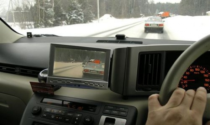 Гораздо практичнее и эффективнее работает видеокамера установленная в левом верхнем углу лобовика!