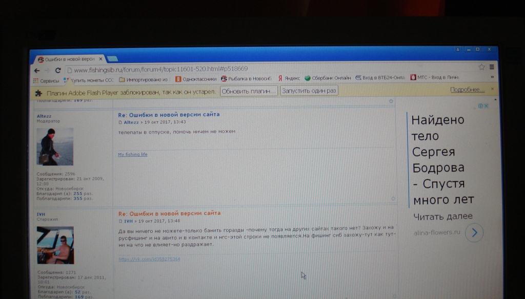 Опять какая то хрень вылезла-постоянно выдает -плагин адоб флеш плеер заблокирован-так как он устарел.Только на этом сайте-на других такого нет.