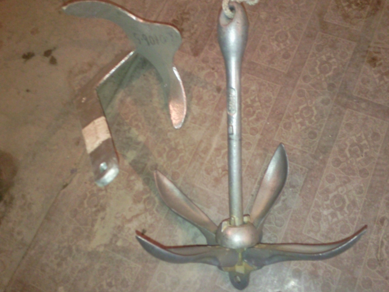 Якоря на 5 кг-плуг и 4.5 складной по 800 и 600 руб соответственно.