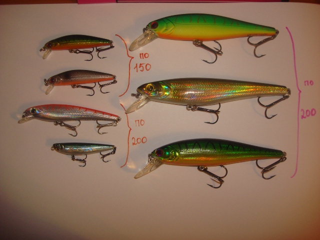Нижняя фотка 2 нижних воблера (которые по 200) - ху из??? ТТХ (длинна, вес, тип, глубина заныривания) можно???