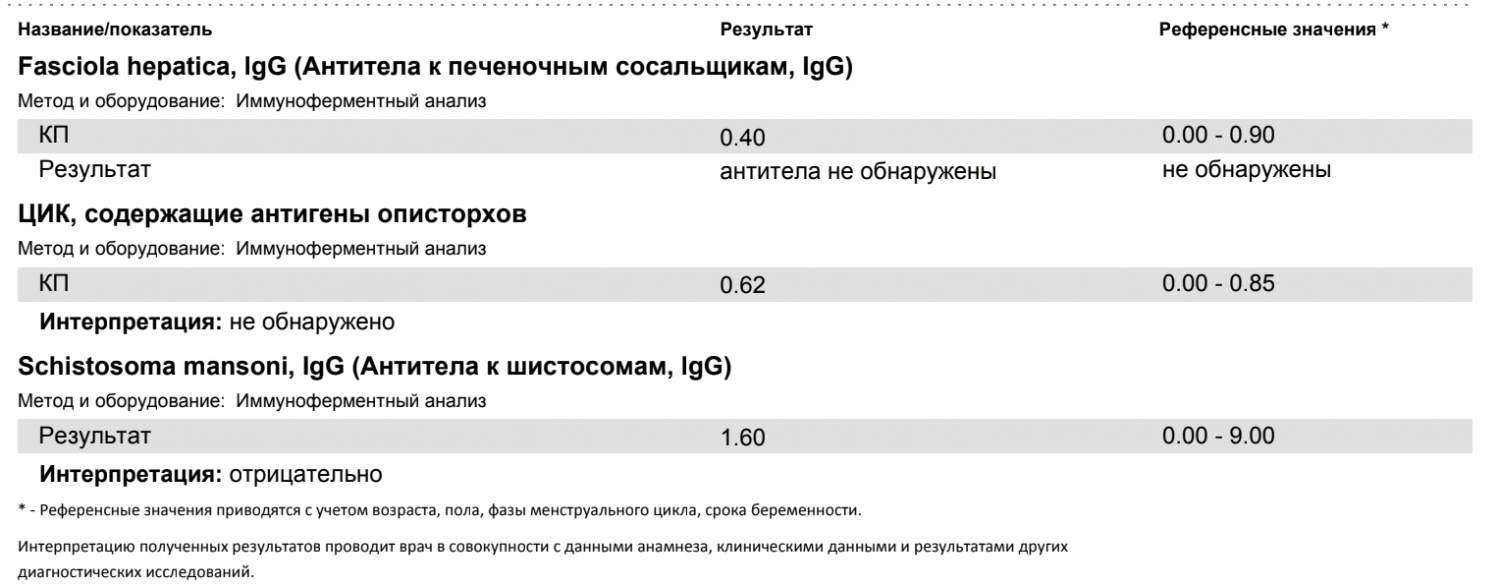 @haznak, знаю, что кровь неинформативна и по ней не лечат, даже если положительно. Но решила сдать. Хрони нет слава богу, есть эозинофилия, крапивница периодическая, одно шелушащееся пятно, много слизи в горле, бессоница, дикая слабость и плохое состояние желчного на первом зонде: слизь, грибы, лямблии, лецкоциты. Биохимия и УЗИ отличные, за исключением перегиба желчного. Аллергии нет у меня стандартной. Решила лететь в Новосиб на зондирование к Дальничевой, хоть и Казань совсем рядом. И сегодня гастроэнтеролог сказал, а че вы хотите - у вас первая порция желчи А еле набралась, а паразитов в большинстве случаев в B и C находят.