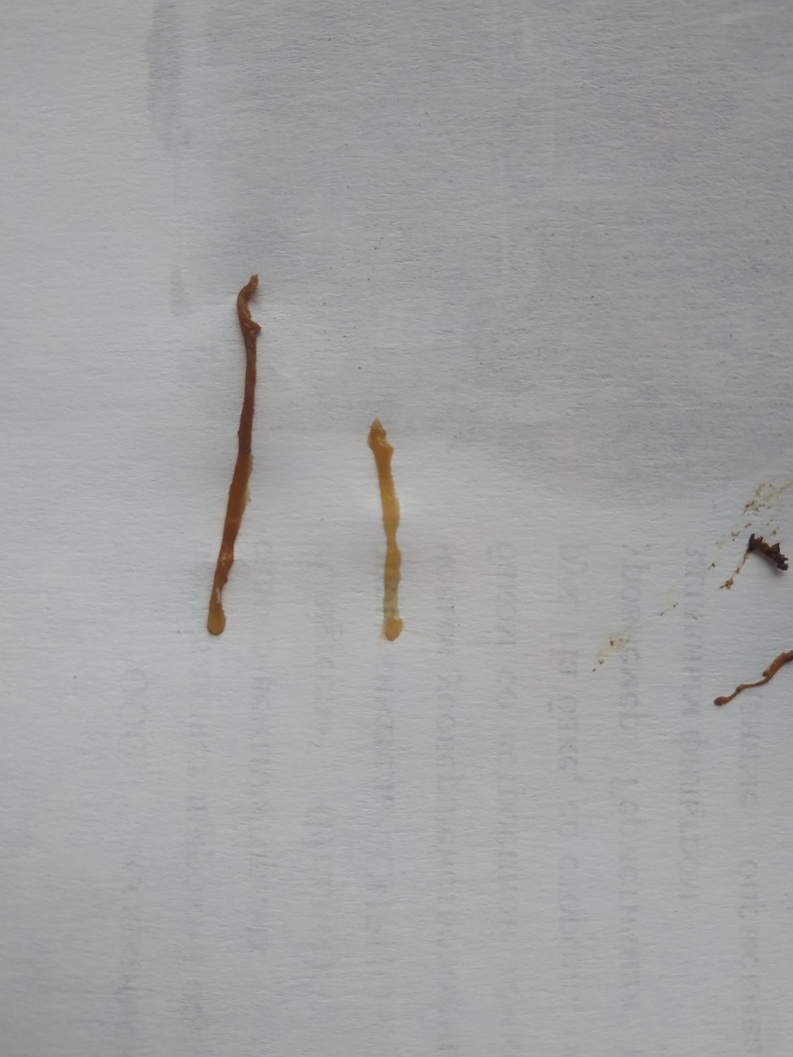 Много тонких длинных штук и не могу понять это слизь или глисты, но их можно развернуть в очень длинную тонкую соплю по всей длине одинаковой толщины. Слизь вроде такая не бывает.