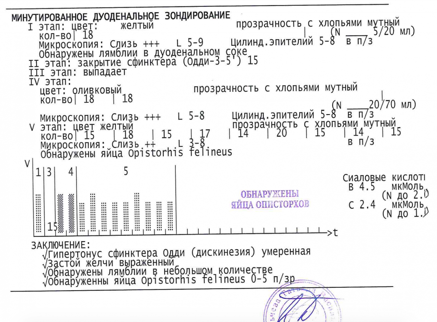 Была сегодня на зондировании у Данильчевой в Гастроцентре, прилетела за 3000 км. Процедура длилась 10 минут! 10 минут и 12 полных пробирок! Настоящий профессионал своего дела! В мое время народу мало было, и все 10 минут она от меня не отходила и в прямом смысле слова выкачивала желчь - шприцом выкачивает воздух, потом раствор заливает и так далее. Я у себя в Чебоксарах два часа лежала давилась на первом зонде, еле две пробирки набралось. А тут - я восхищена! Процедура стоит 1700 руб. Утром зонд, после 16 часов результат. Описторхов у меня нашли, я даже поплакала от счастья. Два года мучений - от чего только не лечили - от простуды, бронхитов, аллергии, астмы... Только вот таблетки никакие не помогали. Да, и опи нашли в последней порции, как и писали многие раньше.