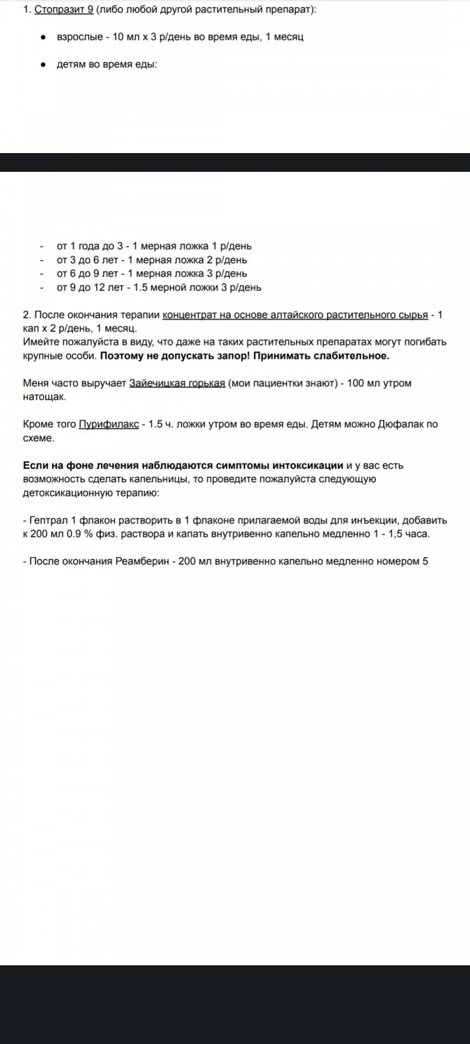 @Snorky,Поеяла спасибо большое! Да я 15 февраля травила в городской больнице, симптомов сильных не было, а бок правый начала чувствовать только после зондирования на котором нашли опиков. После протравки чувствовала хорошо, через неделю деворм 2 дня. А после деворма на 3 сутки почувствовала боль в поджелудочной, до этого даже намека не было на дискомфорт. И все после этого по нарастающей пошло, поем болит с обеих сторон, депресия жуткая встать не могу, вечером уснуть не могу, ну и апофеозом стали боли в суставах. Копчик болит и тазобедренные, копчик так болит с машины вылезти не могу, больно оперется на 1 ногу. Поэтому понимаю что самостоятельно лечится нет времени эксперементировать, а то развалюсь на части. Позвонила в Новосибирск они сказали ремаксол 10 дней, потом консультация с Артемом, анализы и высылают на подготовку бокс. А ремаксол надо прокапать т.к. 3 месяца всего после протравки прошло, а капать не знаю где.В городской напраление не дают, в инвитро в моем городе нет этой услуги, а на дому не знаю где грамотную мед сестру найти да и мало ли. У меня прям дилема.
