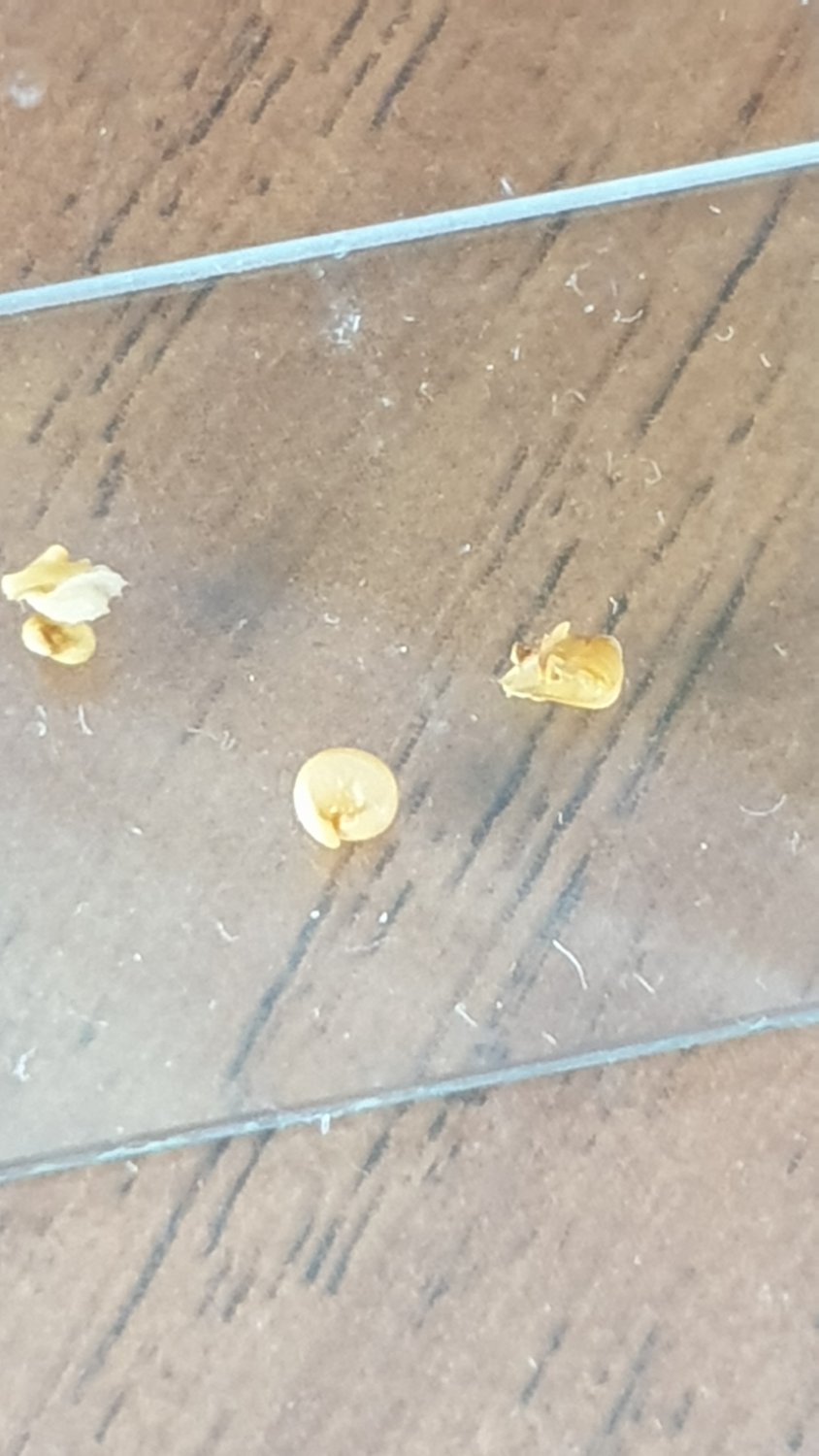 Посмотрел я- очень похоже на мой случай, особенно на изломе видно. По поводу непереваренной булки- что там булка- прочитал, что и цельный бурый рис без вопросов ПОЛНОСТЬЮ переваривается В НОЛЬ, а булка-так та тем более. - Попробуйте, всё-таки поглядеть через лупу, промыв, конечно, от всего лишнего