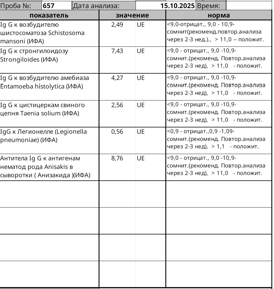 По сути если хоть одни антитела на каких то паразитов у взрослого человека дали положительный результат - то там у него будет скорее всего целый зоопарк. Нужен комплексный подход. Это из того что я понял за свой многострадальный опыт.