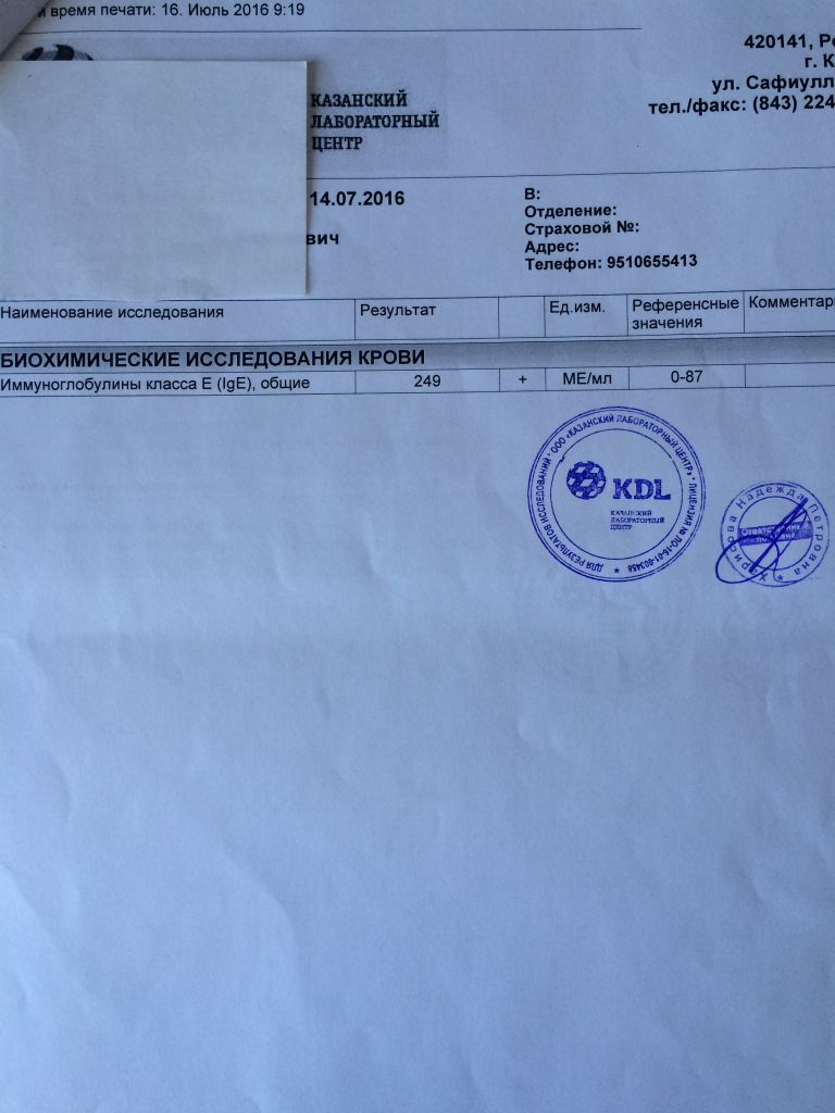 Развёрнутый анализ , антитела к различным непрошеным гостям , иммуноглобулин класса Е , зондирование.