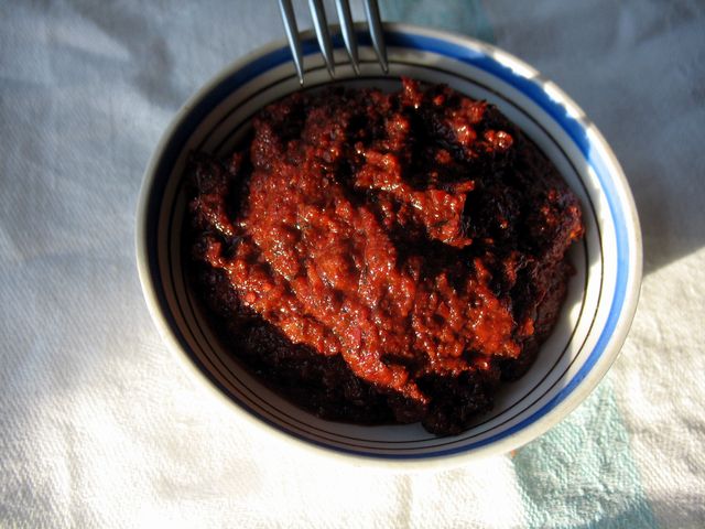 Аджика — абхазская острая и ароматная приправа — пастообразная масса из красного перца, cоли, чеснока, пряных трав. adgika.JPGМожно мазать на хлеб, можно смешать с томат-пастой - получится кетчуп. Можно добавлять в качестве пряностей в первые и вторые блюда, можно в маринад для шашлыка, ну и вообще ученые рекомендуют регулярно употреблять острый красный перец для профилактики сердечно-сосудистых и прочих заболеваний.