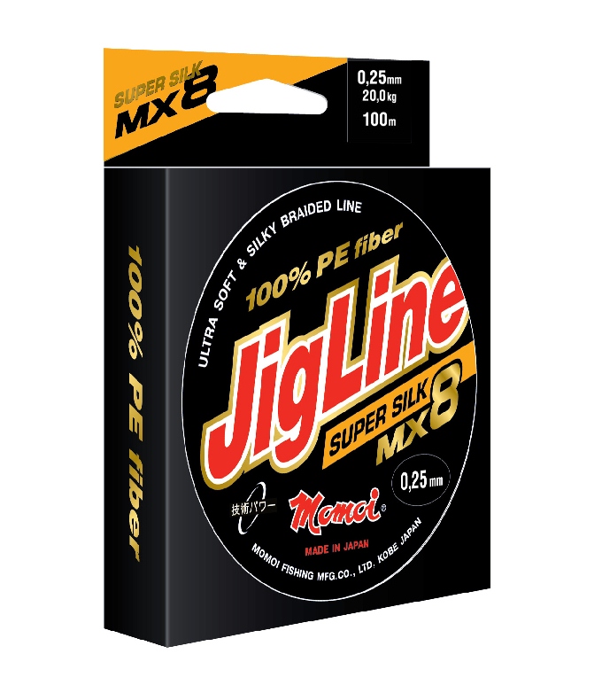 Специалисты Momoi Fishing добились очень плотного переплетения нитей шнура, что позволило значительно повысить его прочность и износостойкость. При подобном плетении растяжимость шнура минимальная, а эксплуатационные качества увеличиваются в разы. Благодаря применению 4-х и 8-ми прядной технологии плетения JigLine имеет абсолютно круглое сечение.