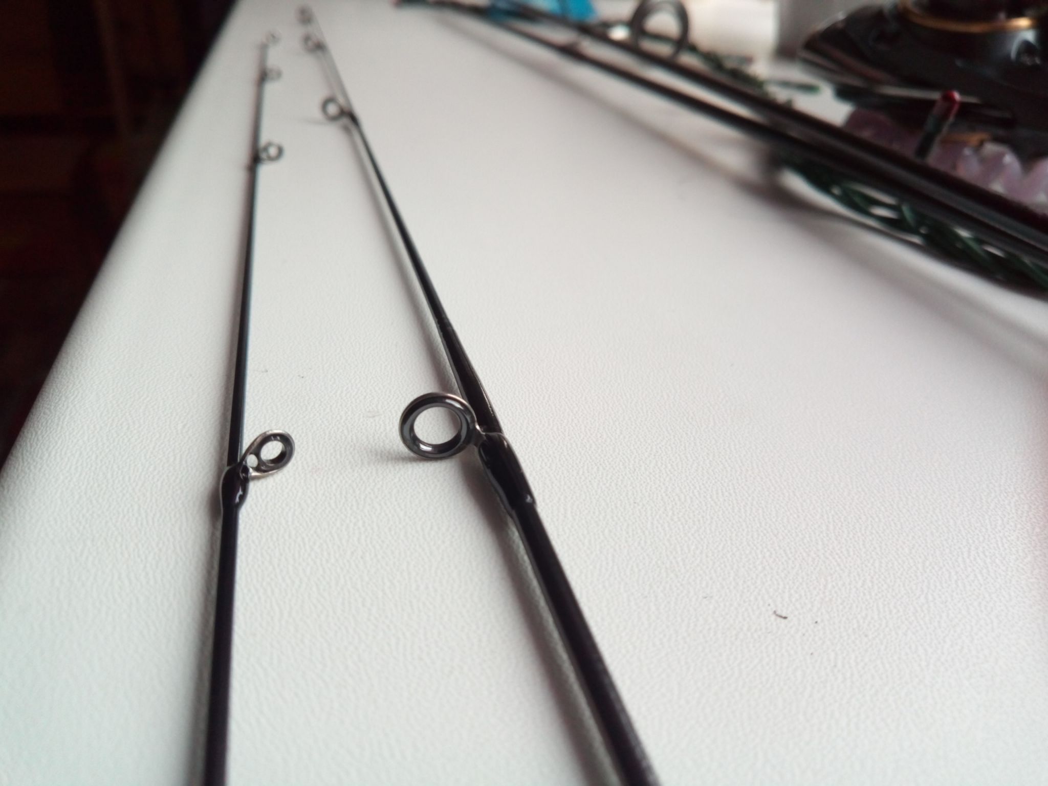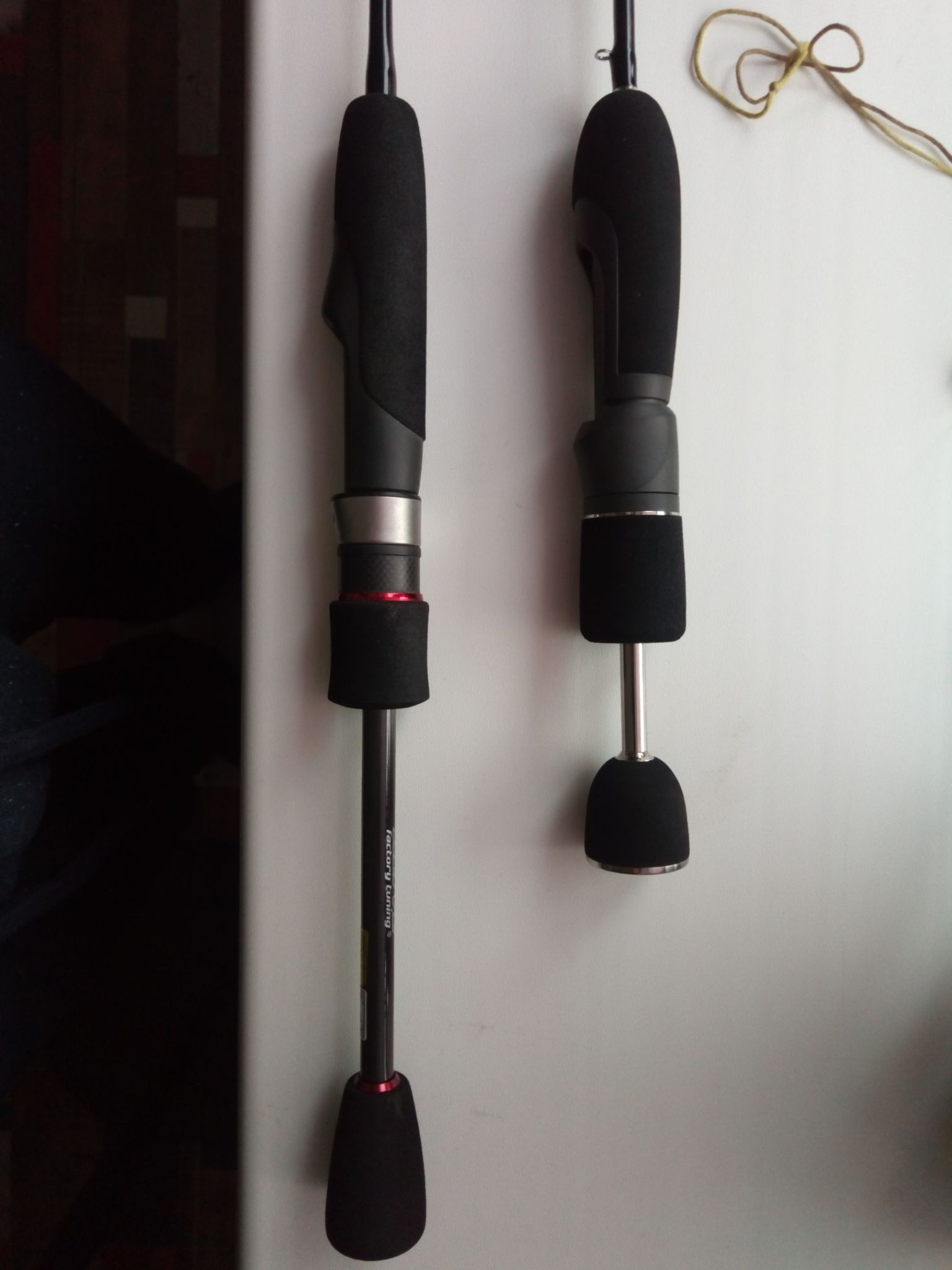 Суть этого поста в следующем: при правильном выборе спиннинга для ловли мормышками, немаловажную роль играет практически любая деталь в его исполнении - тип колец, их расстановка, диаметры, наличие или отсутствие солидовой вершинки, ее размер, рукоять, конусность и диаметры бланка, длина рабочей части бланка, строй и тд и тд... В конечном итоге, наша оценка спиннинга, в работе с нужными приманками, складывается из определенного сочетания этих и других моментов, даже если мы не рассматриваем их отдельно. Так вот здесь, с помощью фотографий я хотел бы показать несколько сухих параметров двух довольно известных, в узких кругах мормышеров, спиннингов, которыми укомплектован и я в том числе. Итак, Mukai AS SUZ 1602 и Matagi TWJ-562 XUL - в стандартной, наиболее простой липецкой сборке.