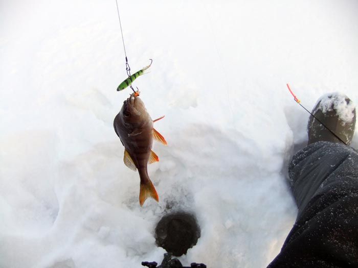 Порадовал клевом окунь, который на блесны ловился не хуже, чем на мормышку с насадкой. Наловить окуня можно было очень много.