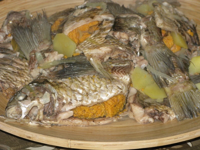 Противень выкладываешь палочками от укропа,или от ивы,черёмухи,кладёшь на их карасей и в русскую печь,в вольный жар,печься,вот это объедение получается.